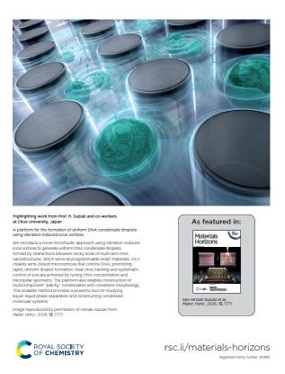 - Z. Huang, K. Kaneko, R. Yoneyama, T. Maruyama, T. Hayakawa, M. Takinoue, H. Suzuki, “A platform for the formation of uniform DNA condensate droplets using vibration-induced local vortices,” Materials Horizons, 13, 1777-1786, 2026. (link) (プレスリリース,英語プレス,EurekAlert!, Science Japan)※本研究および関連する人工細胞研究が2026年1月6日の日刊工業新聞で紹介されました